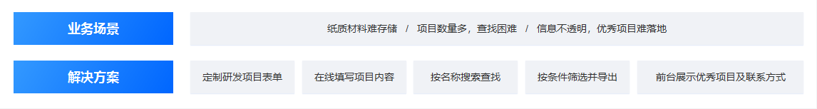 包括项目录入、按名称/条件检索、优秀项目展示 等