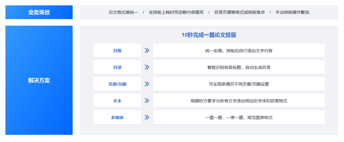 根据用户选定的文档模板,将复杂的页眉页脚、图表文字、目录文献等格式设置整合简化为一键操作